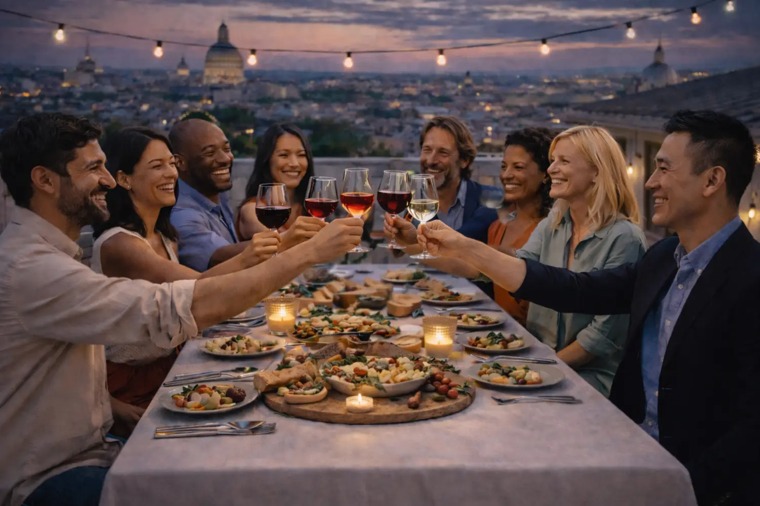 Una cena tra amici: si brinda e la serata si accende.